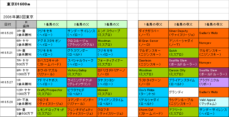 で、先の記事を見ると今開催の1600はニジンスキーが好調なんですね。安田記念の基本傾向でサンデーとニジンスキーは切ろうと思っていただけに、ちょっと悩ましいところです。