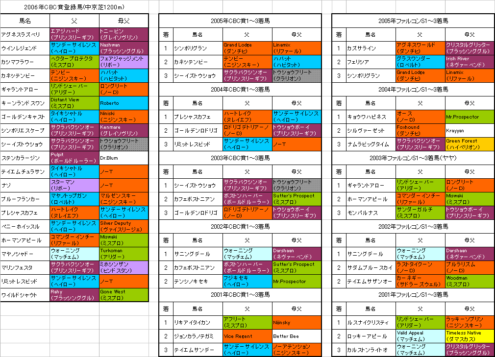 ■先週あたりからダンチヒ系が大活躍!しかしCBC賞登録馬に父・母父どちらかがダンチヒ系という馬はいない・・・。