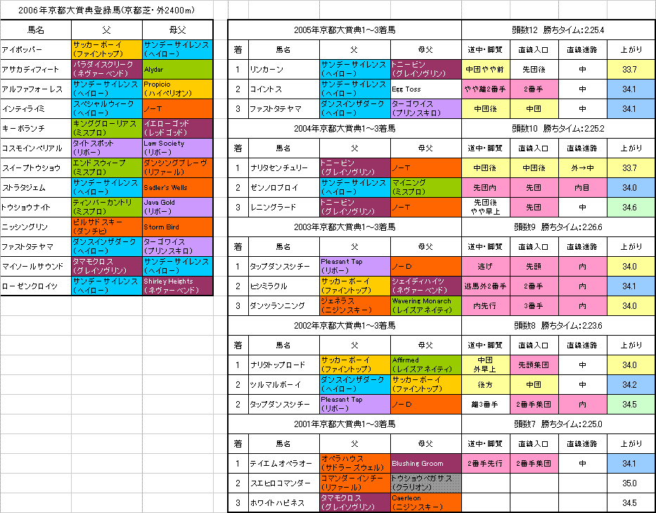 ★京都大賞典登録馬の血統(表2)