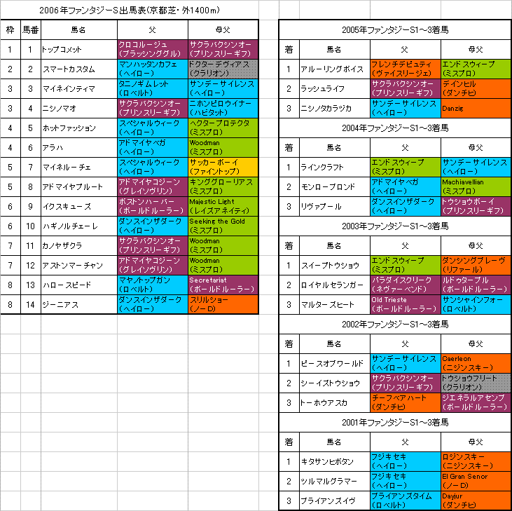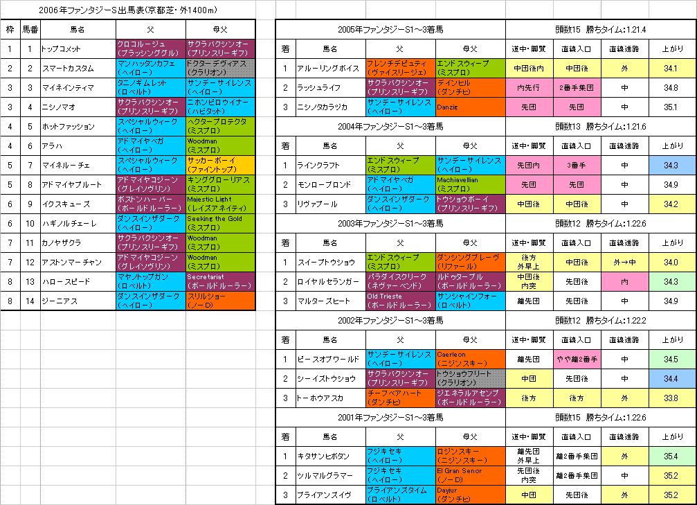 父か母父がノーザンダンサー系(大系統)という馬が今年の出走には1頭だけ。しかもその馬は個人的にピンときていないのでターントゥ系(大系統)中心でいきたいと思います。