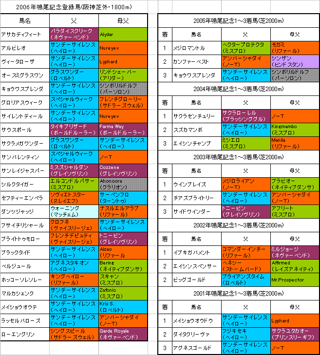 鳴尾記念登録馬の血統 記事 登録馬(表)
