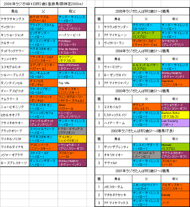 ラジオNIKKEI杯2歳S登録馬の血統 記事 登録馬(表) 登録馬(表2)