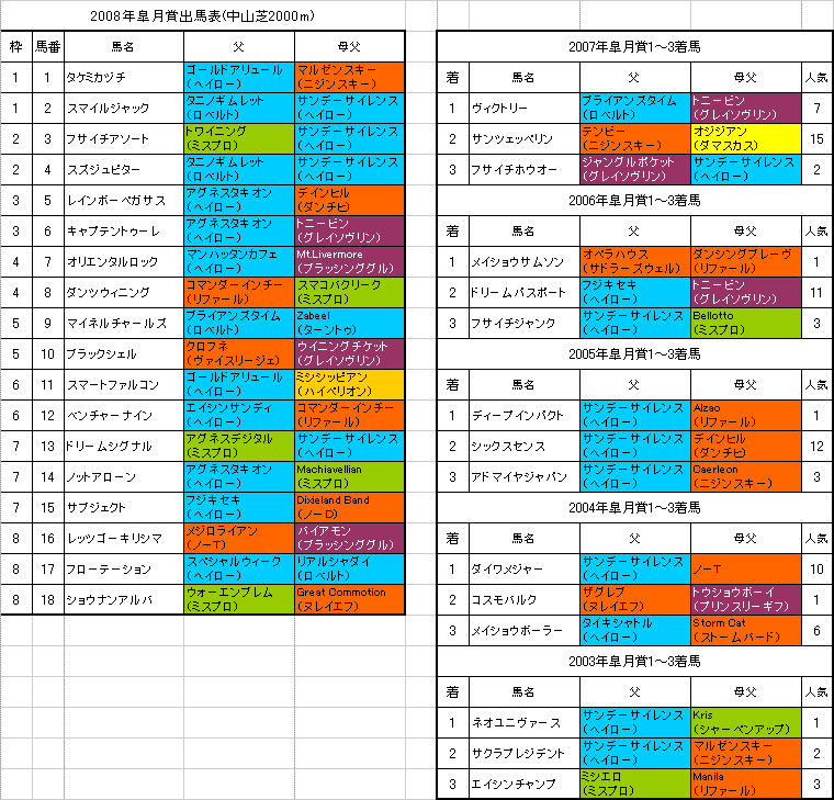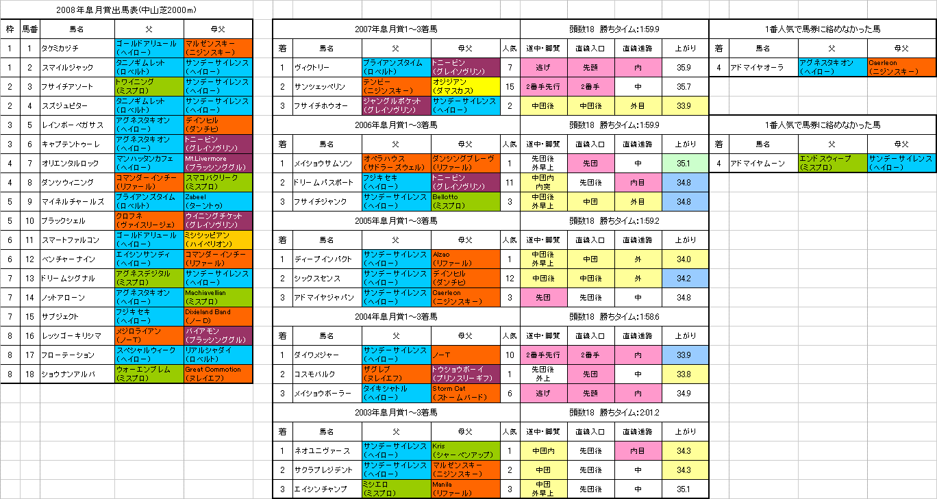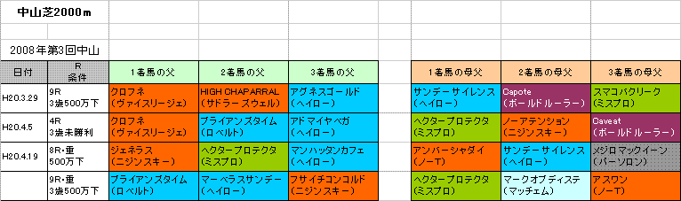 クロフネ産駒は中山芝2000mで安定感があり基本的には買い。しかし珍しく人気を裏切ったのが2006年皐月賞のフサイチリシャールと土曜日のディアーウィッシュ。日曜日の皐月賞に向けて良い感じはしない。