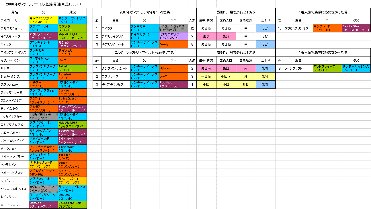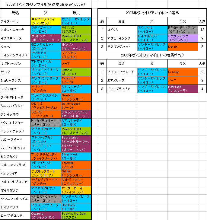 ☆ヴィクトリアマイル登録馬の血統(表2)