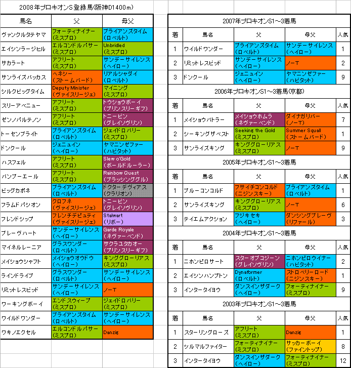 2008年プロキオンステークスデータ分析