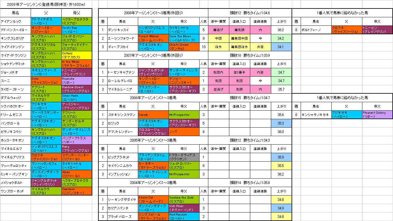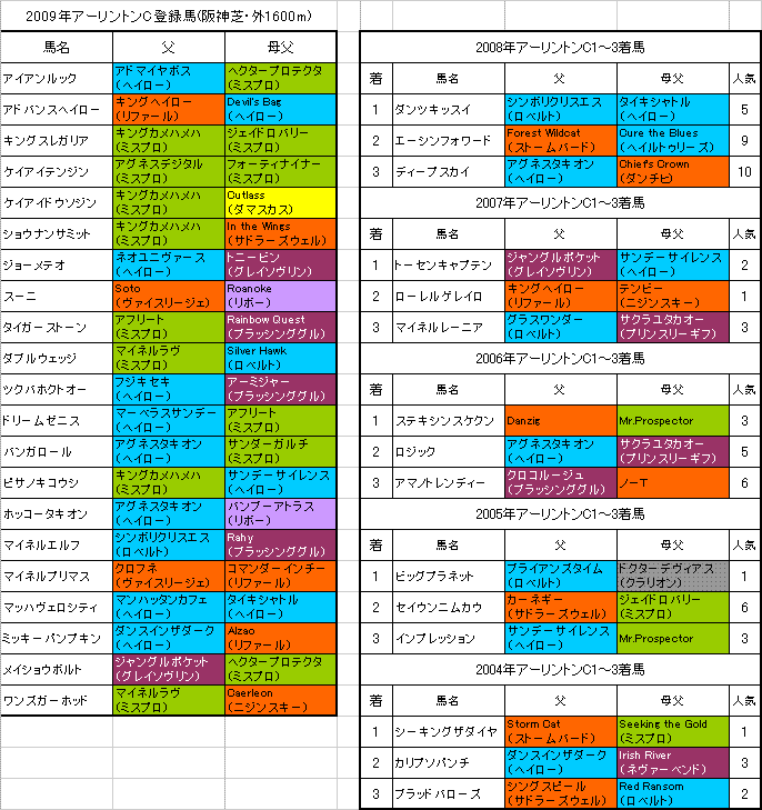 ★アーリントンC関連記事:登録馬の血統 登録馬(表) 登録馬(表2)