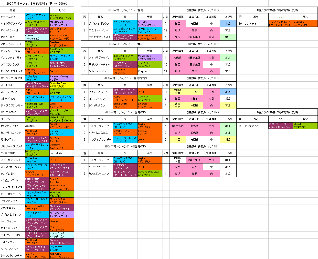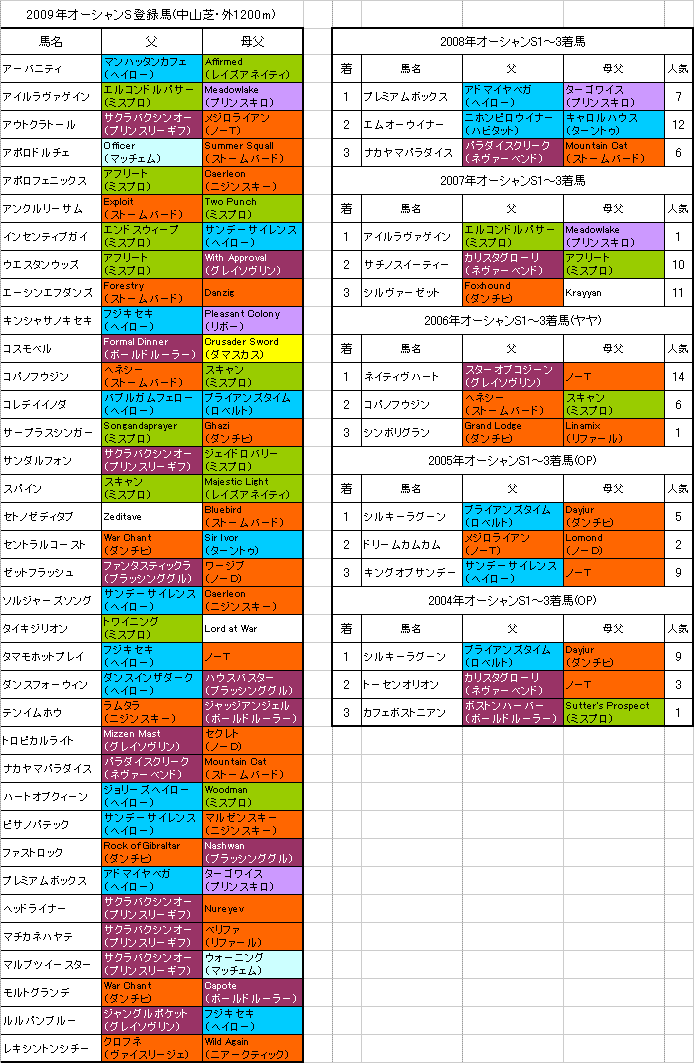 オーシャンステークス 2009 傾向分析 第4回 オーシャンステークス(GIII) 今週行われるオーシャンステークスの 過去3年の傾向分析をします。 良馬場で行われれば、 前に行った馬に有利なレース。 道中のペースが厳しくなり、 タフな状...