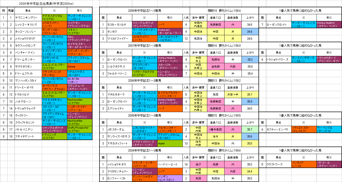 ★2009年第2回中山開催データ