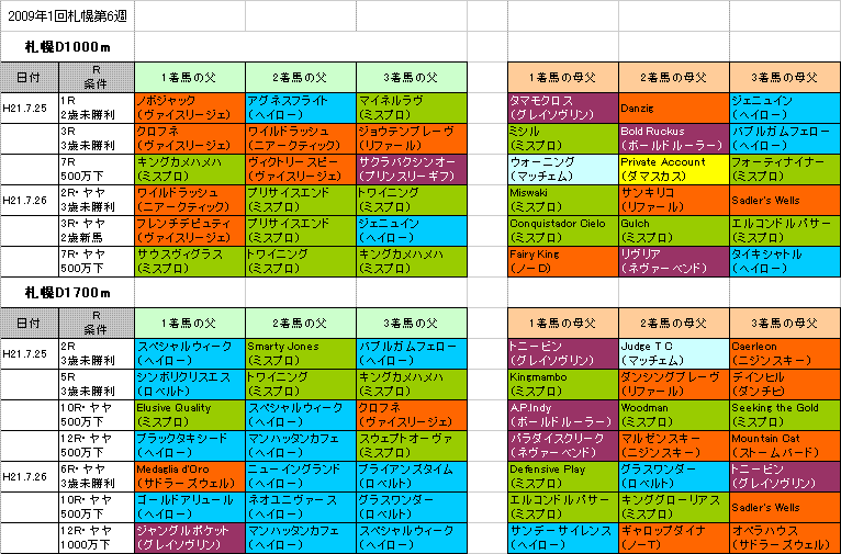 先週の札幌D1700m:パワー型ターントゥ系(大系統)か、パワー型血統×ターントゥ系(大系統)配合。キングマンボ系(ミスプロ系)が活躍。