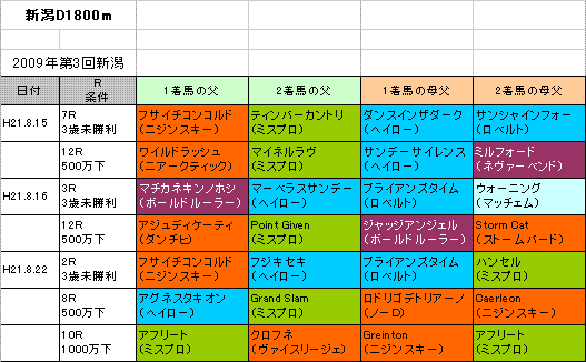 ★新潟D1800m連対馬の血統(表)