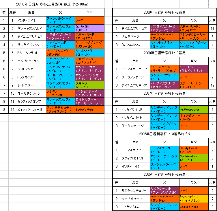 左は【日経新春杯】京都芝・外2400mの出馬表と各馬の血統、過去5年の1〜3着馬の血統です。(クリックすると大きな画像で見ることができます。)【日経新春杯】の予想を書かせていただきます。☆【日経新春杯】登録馬の血統