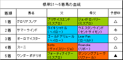 【根岸S】東京D1400m1〜5着馬の血統は左の表のようになっております。第24回 根岸ステークス(GIII) |