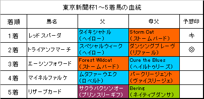 【東京新聞杯】1〜5着馬の血統は左の表のようになっております。第60回 東京新聞杯(GIII) |