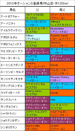 ★オーシャンS登録馬(表1)