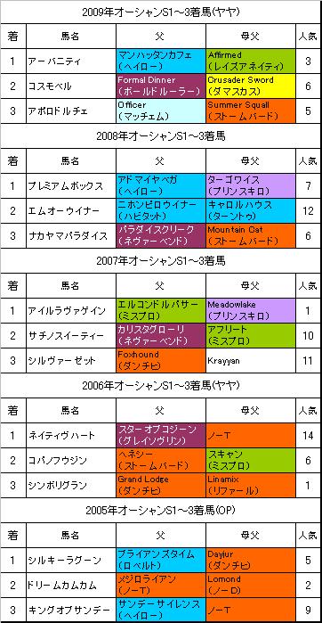 ★オーシャンS過去5年(表)