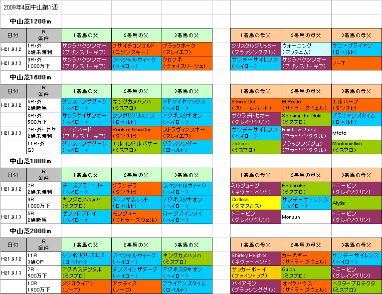 左は【紫苑S】中山芝2000mの過去2回の1〜3着馬の血統です。(クリックすると大きな画像で見ることができます。)「系統色分け表」はこちらです。【紫苑S】の予想を書かせていただきます。競馬(中央競馬、地方競馬、海外競馬)情報 |