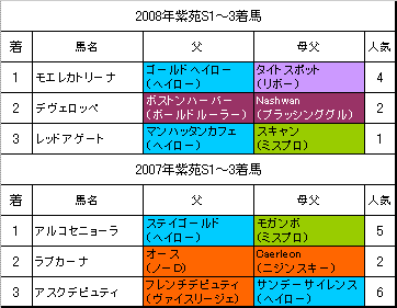 先週の札幌D1700m:連対馬16頭中15頭は父か母父がターントゥ系(大系統)だった。