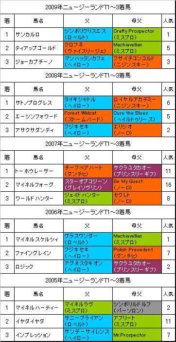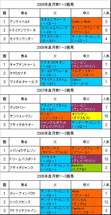 ☆道中のスピードと最後に踏ん張るパワーが要求されることもあってか、ネイティブダンサー系(大系統)が活躍。