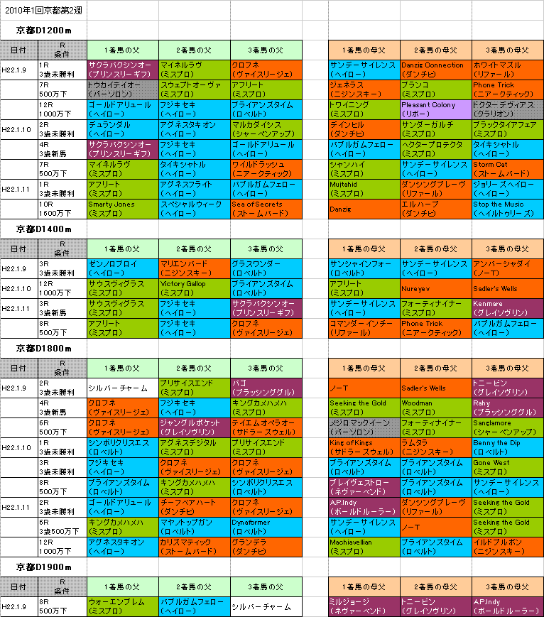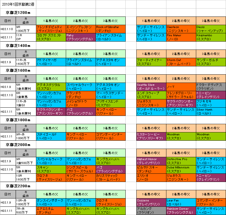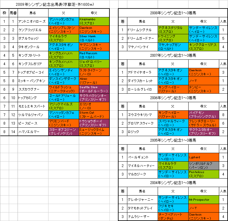 【シンザン記念】京都芝・外1600m1〜5着馬の血統は左の表のようになっております。第44回 シンザン記念(GIII) |