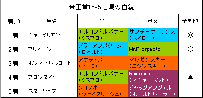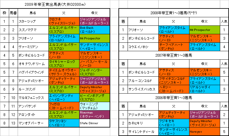 左は【帝王賞】大井D2000mの出馬表と各馬の血統、過去3年の1〜3着馬の血統です。(クリックすると大きな画像で見ることができます。)「系統色分け表」はこちらです。【帝王賞】の予想を書かせていただきます。続きを読む