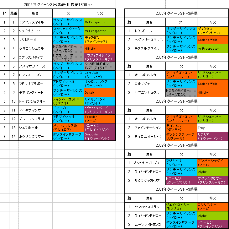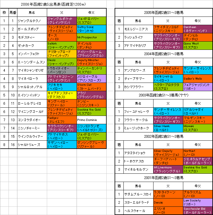 【札幌日刊スポーツ杯】の系統色分け出馬表