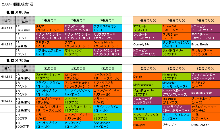 昨年の札幌開催開幕週ではノーザンダンサー系(大系統)が活躍。特にサドラーズウェルズ系・ヌレイエフ系・ダンチヒ系が好調でした。