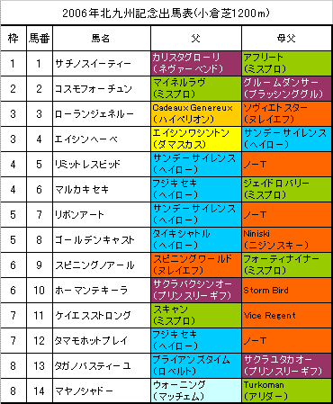 【しらかばS】の系統色分け出馬表