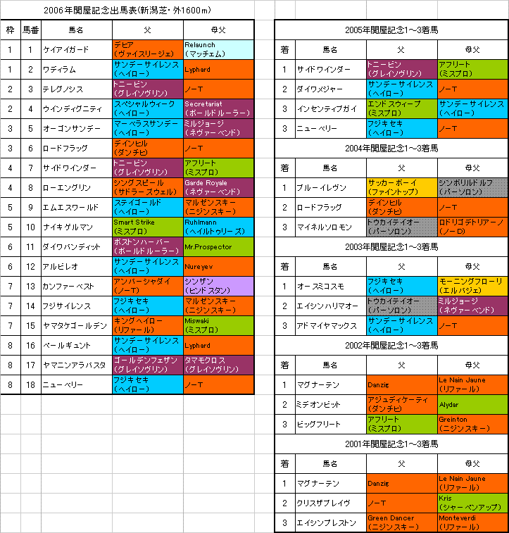8月6日日曜日の系統色分け出馬表