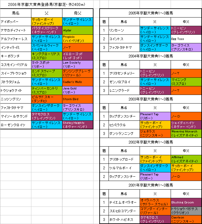 【京都大賞典(2006年)】登録馬の血統