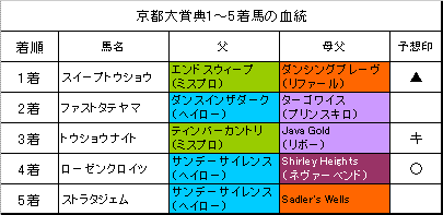 1〜5着馬の血統です。こちらをみながら