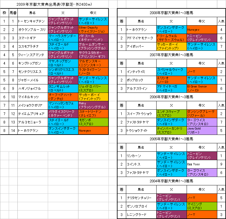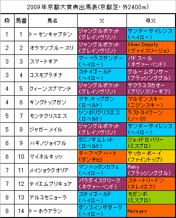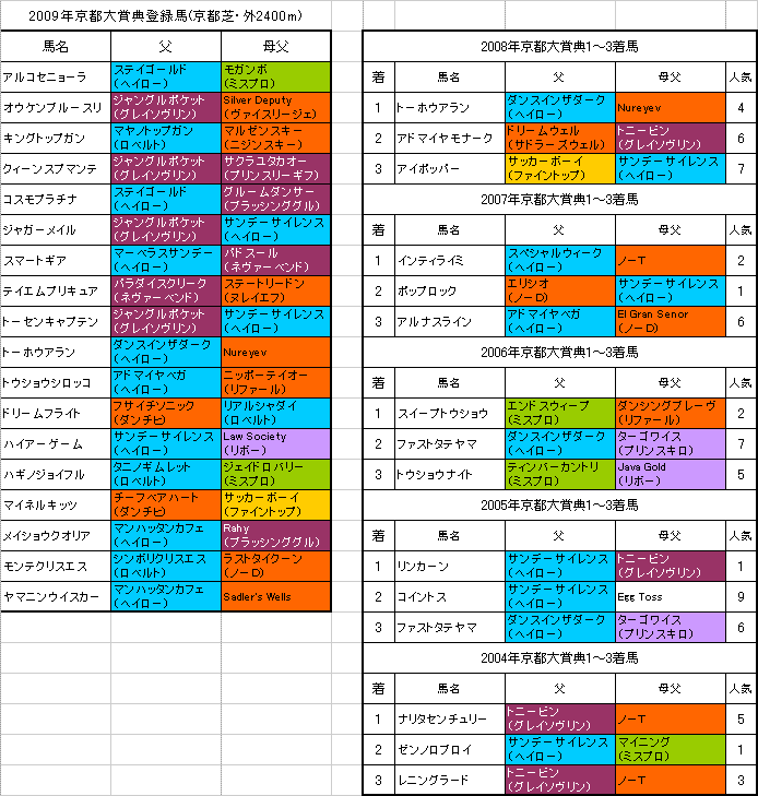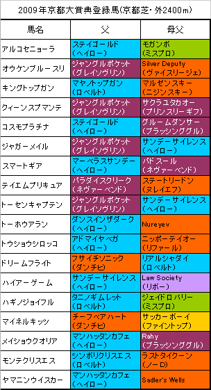 【京都大賞典】京都芝・外2400m1〜5着馬の血統は左の表のようになっております。【京都大賞典】の予想はこちらでした。