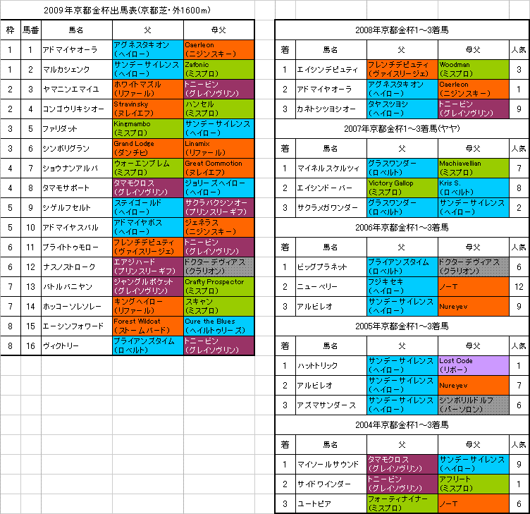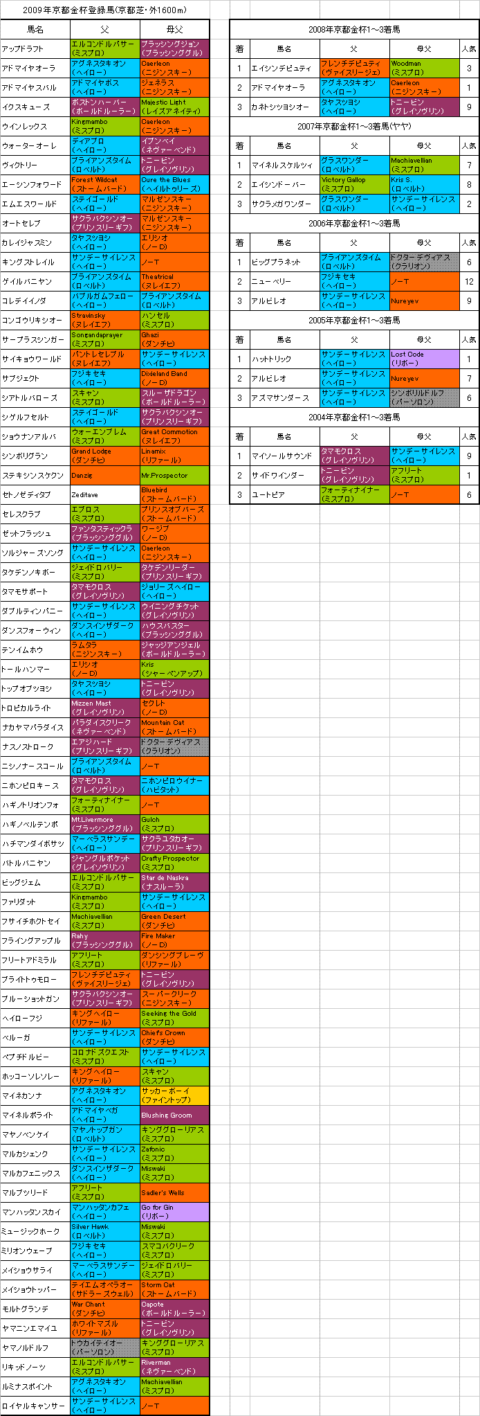 全体:ダンスイザンダーク産駒(サンデーサイレンス系)、グレイソヴリン系が活躍。スタミナ型血統とミスプロ系やパワー・スピード型ノーザンダンサー系などダートでも走っていそうな血統との組み合わせが多い。