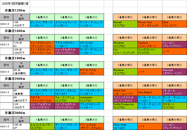 1200・1400m:ヴァイスリージェント系が大活躍。スピードに寄り過ぎないノーザンダンサー系やミスプロ系が中心。