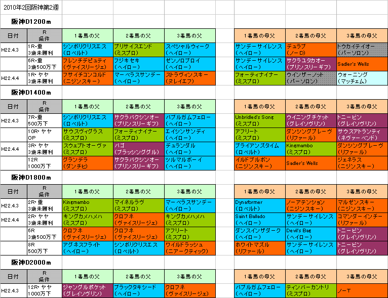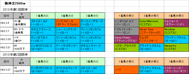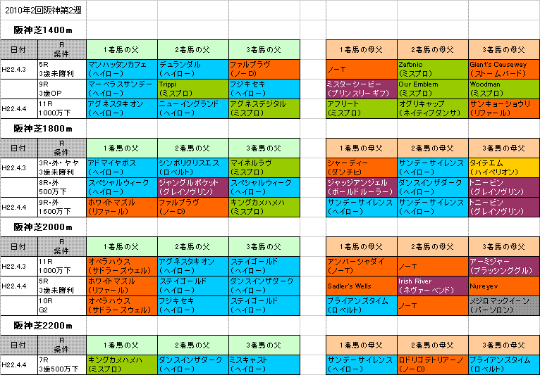 ★阪神芝2000m連対馬の血統(表)