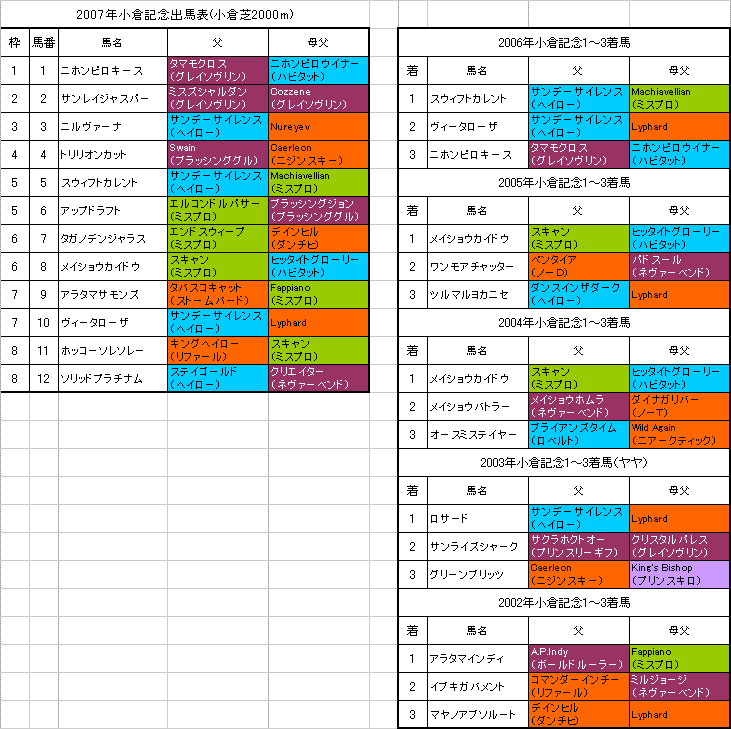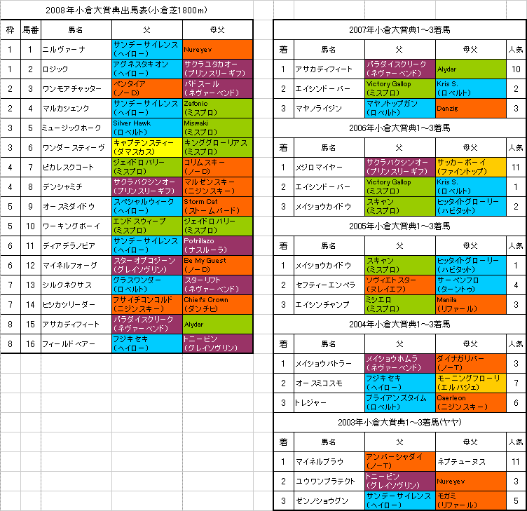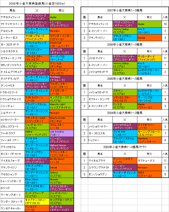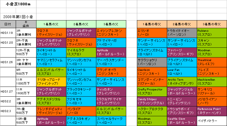 1700・1800m:ダンスインザダーク(ヘイロー系)・スペシャルウィーク(ヘイロー系)といったスタミナ型サンデーサイレンス系(ヘイロー系)が活躍。スタミナ型ノーザンダンサー系(大系統)も良かった。
