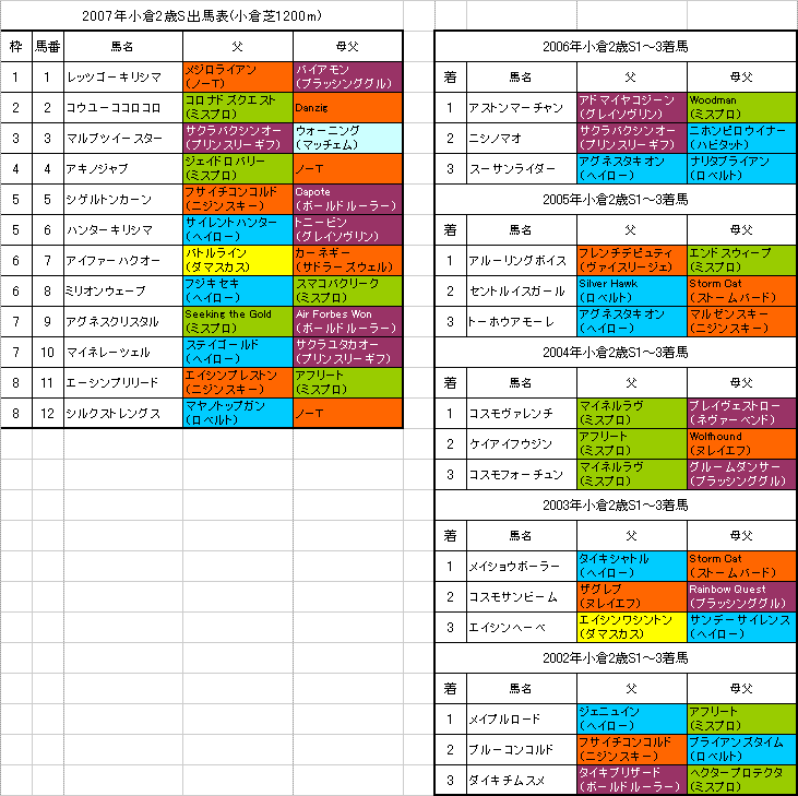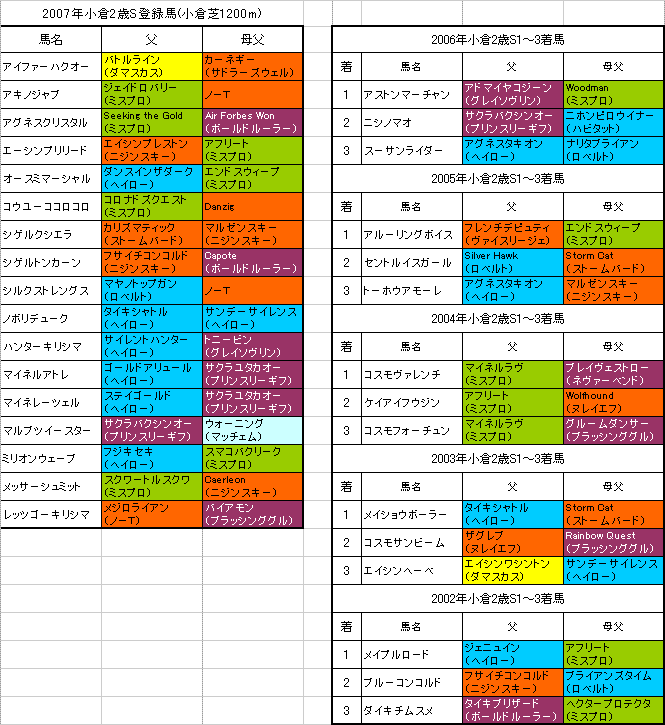 1000・1200m:当たり前だがスピード血統が中心。スピード型ターントゥ系(大系統)、サクラバクシンオー(プリンスリーギフト系)、ダンチヒ系。