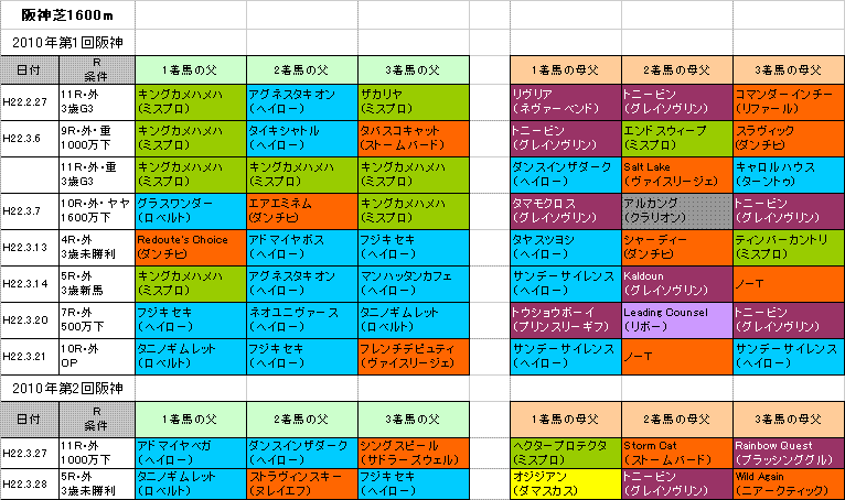 ★阪神芝1600m連対馬の血統(表)