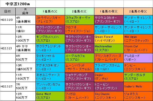 ★中京芝1200m連対馬の血統(表)