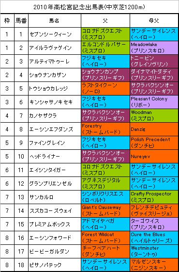 ★高松宮記念出馬表(表)
